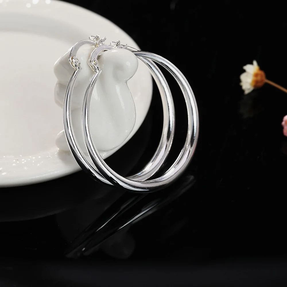 925 Sterling Silver Fine 4cm diameter Big circle Earrings for Women Fashion Party Wedding Accessories Jewelry Christmas Gifts