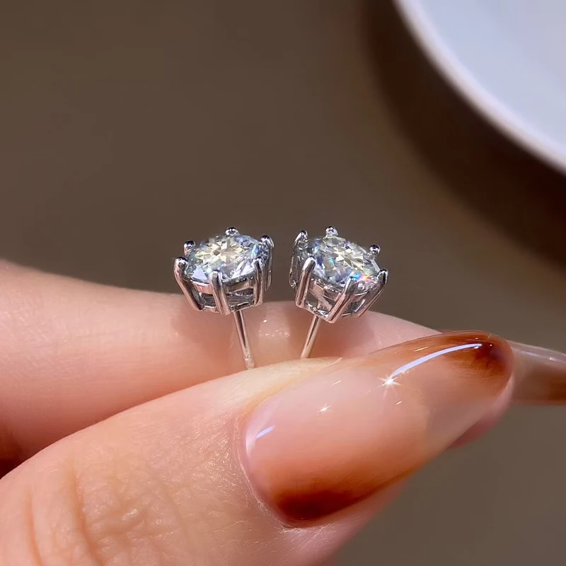 KNB 0.1CT-2CT D Color Lab Created Diamond Certified Moissanite Stud Earrings for Woman Gift 925 Sterling Silver Wedding Jewelry