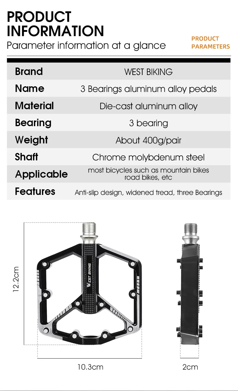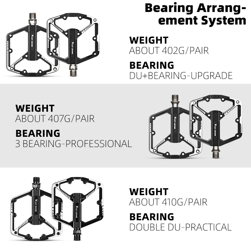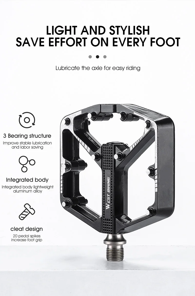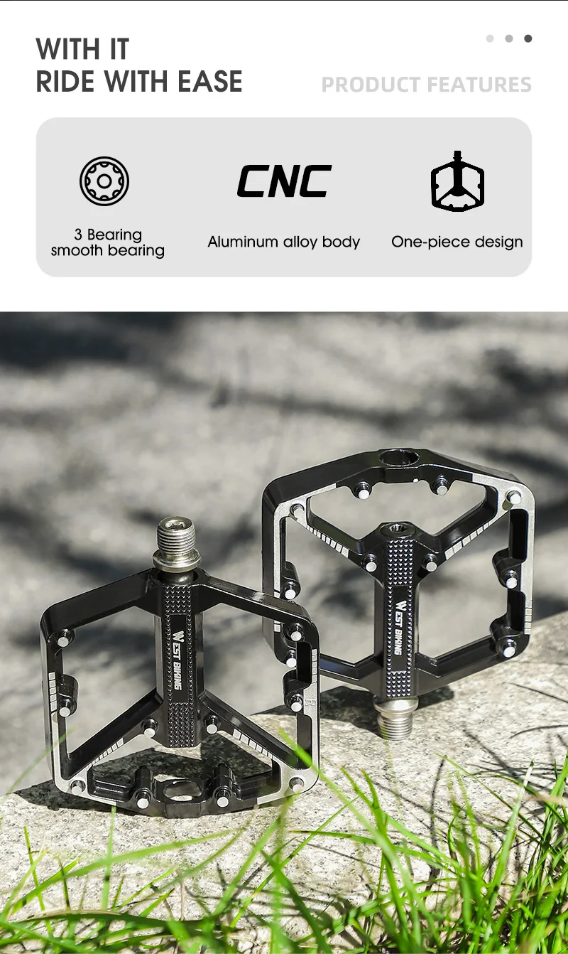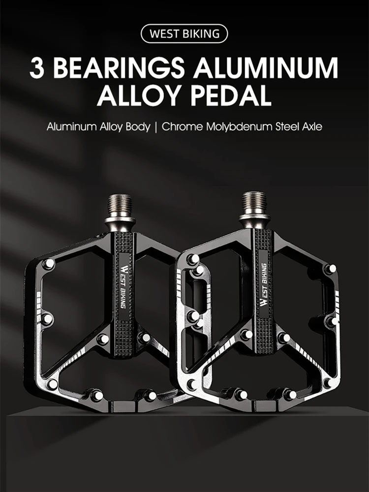 WEST BIKING Bicycle Pedal DU/ 3 Bearing Sealed MTB Mountain Road Bike Widened Pedals Anti-slip Aluminum Alloy Pedal Cycling Part