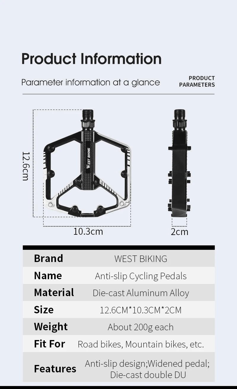 Features: Antislip design;Widened pedal; Die-cast double DU